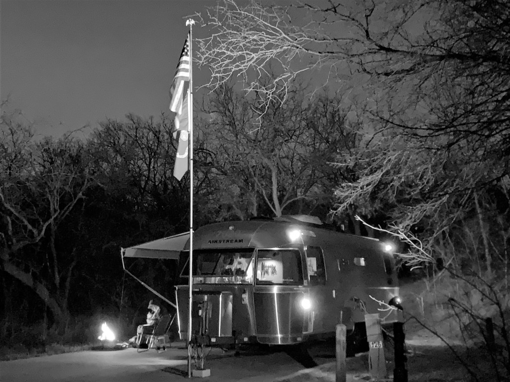 We carried our conversation about Mister Rogers well into Saturday morning, and before we realized it we were beyond our typical brunch period. So we did something we rarely do: We went into town for lunch. Because it was National Margarita Day, we decided to visit Campuzano Mexican Food in Cedar Hill. The moderately priced house margaritas were fine, but the mixed-meat fajitas were fantástico! We returned to Cloud 9 for a long afternoon nap, followed by an exceptional campfire under starlit skies, and an aborted viewing of “The Irishman” (after about an hour, we simply admitted we were bored with it and went to bed).
