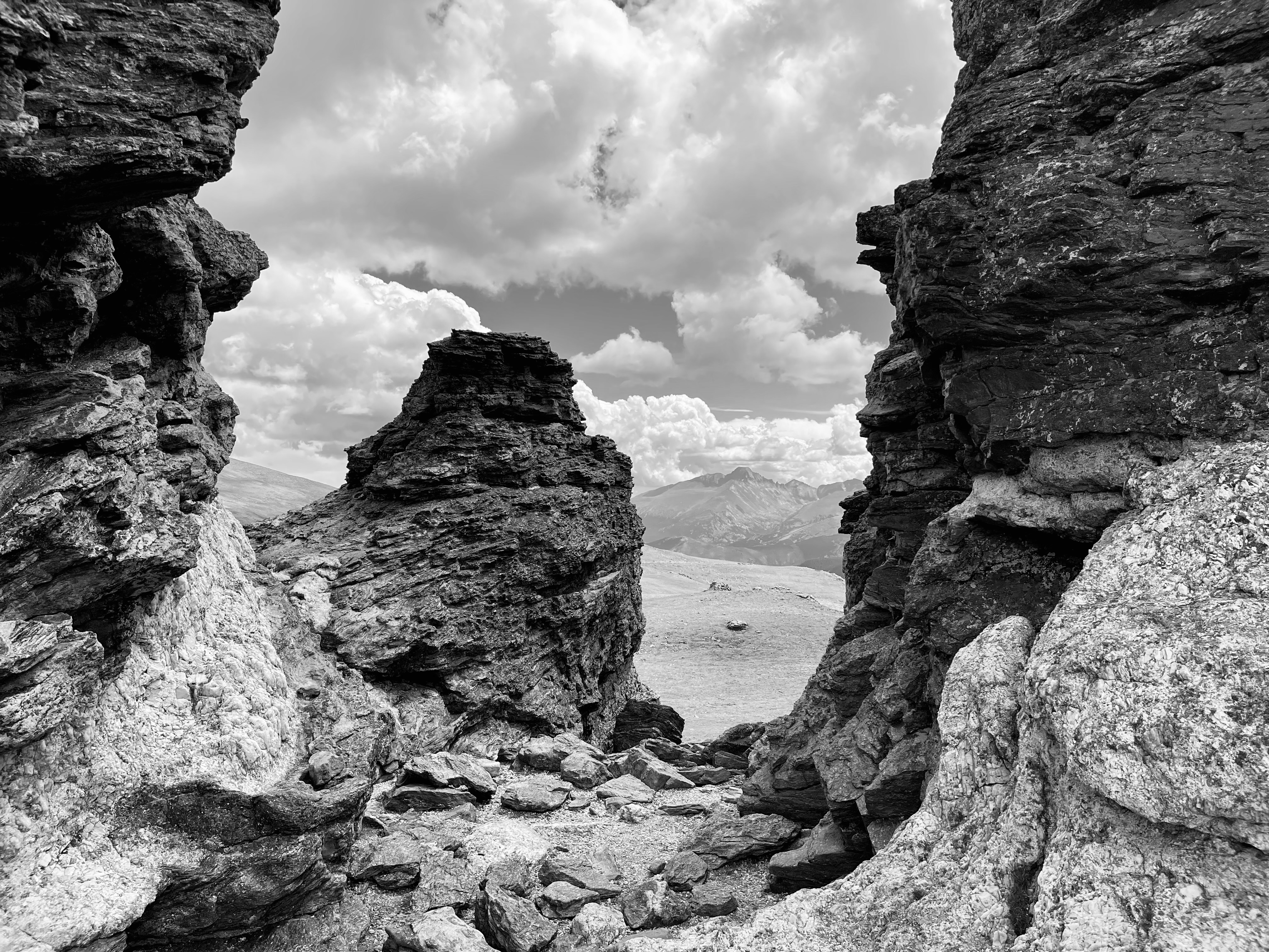 At just over a half-mile, and an elevation of 12,319 feet, we reached the end of the trail at the Roger Toll Memorial. It consists of a plaque on the rocks dedicated to the former superintendent of Rocky Mountain National Park (from 1921 to 1929). Toll was a civil engineer, naturalist, and mountaineer, “whose love of the high country was manifested by helping to make it more accessible,” the memorial plaque declares.