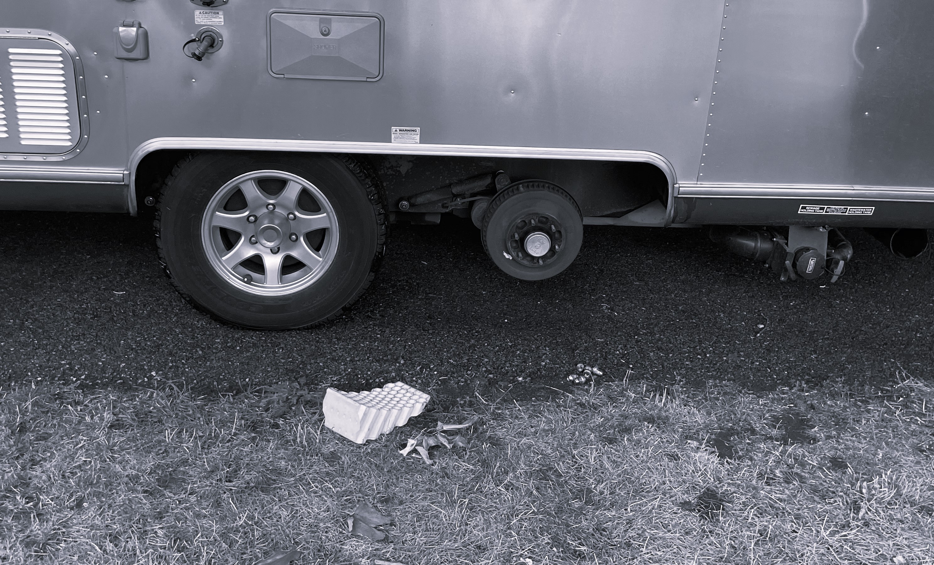 The rain delayed arrival at our destination KOA campground by about 40 minutes, and within seconds we received an alert from our tire pressure monitoring system that one of our tires was losing pressure. Sure enough, we had an embedded bolt. We removed the tire (a comedy of errors) and proceeded with setting up for our four-night stay, finally having our dinner at around 8:15 (leftover boeuf Bourguignon never tasted so good).