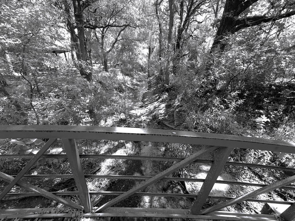 One thing is clear: AI won’t replace the camping experience. This long Labor Day weekend found us enjoying Site 6, adjacent to a creek and a forest trail accessible only by bridge. A substantial rain shower on Saturday morning eventually gave way to sunny skies, cooler temperatures, lower humidity, and gentle breezes. We typically avoid holiday weekends because, well, so many campers are “holiday” campers, meaning they’re not regulars. They come fully ready for weekend activities with watercraft, bounce houses, smokers, grills, boats, etc., establishing a “compound” rather than a campsite.