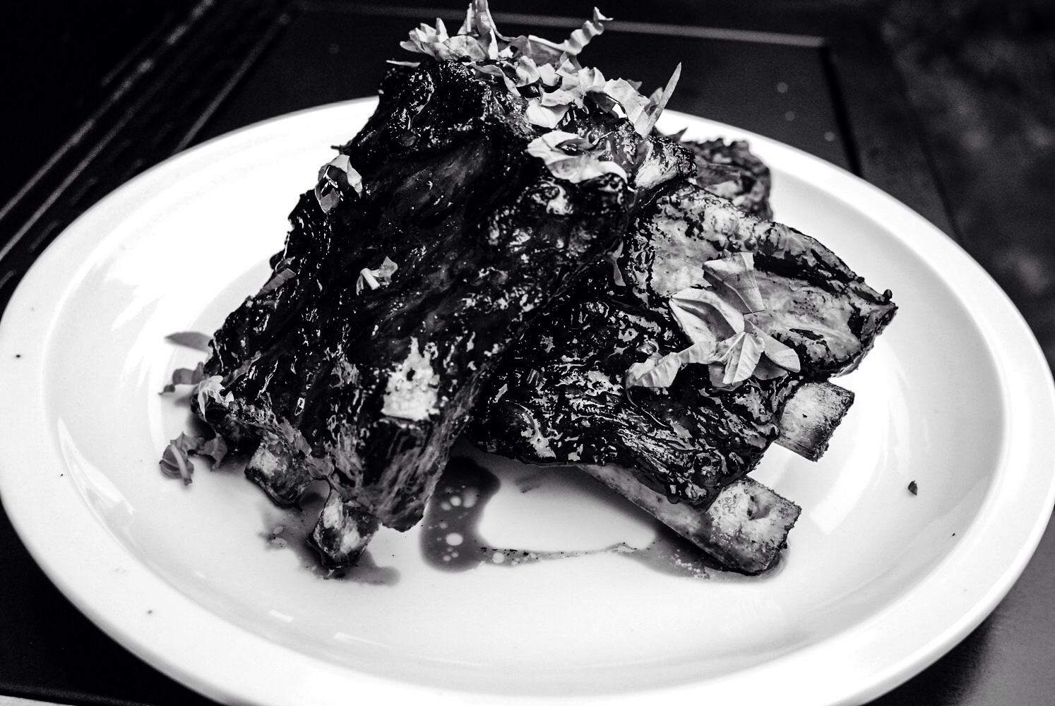 Rub seasoning on all sides of the ribs and place them in a gallon-sized plastic storage bag. Pour vinaigrette into bag and allow ribs to marinate at least four hours. Remove ribs from bag, discard the bag and marinade. Allow ribs to come to room temperature. Over a medium-high heat, grill ribs for about four or five minutes, turning frequently to allow all sides to char. Let grilled ribs rest for about five minutes before serving. Garnish with fresh mint leaves.