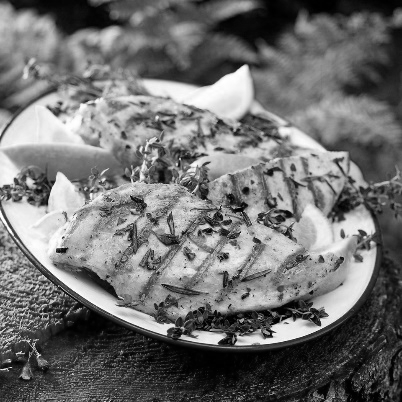 - This dish can be garnished with fresh Rosemary or Thyme and goes well with any veggie side: grilled broccoli, cob-corn, and charred tomato halves